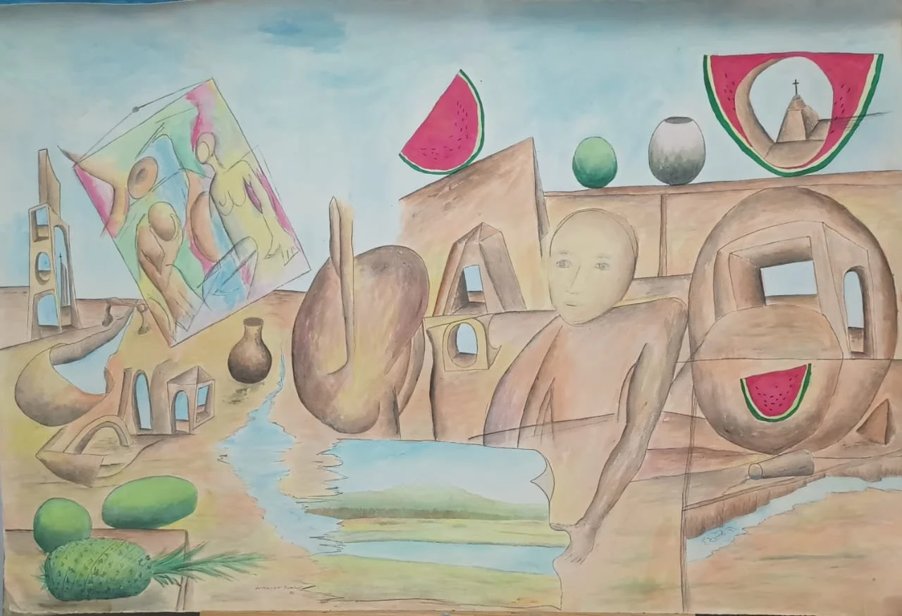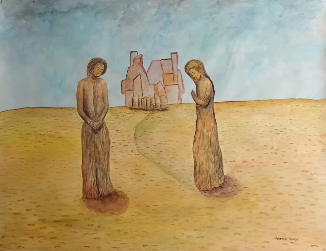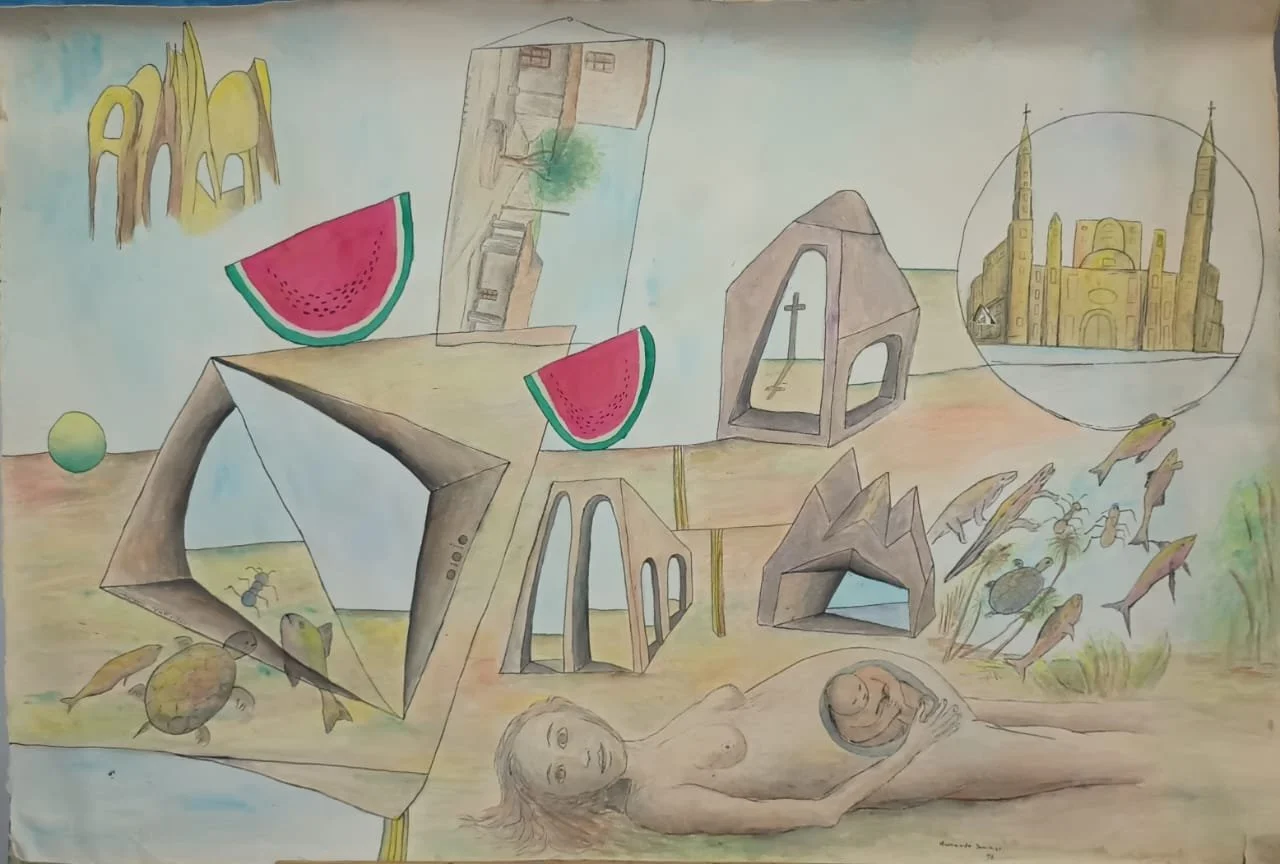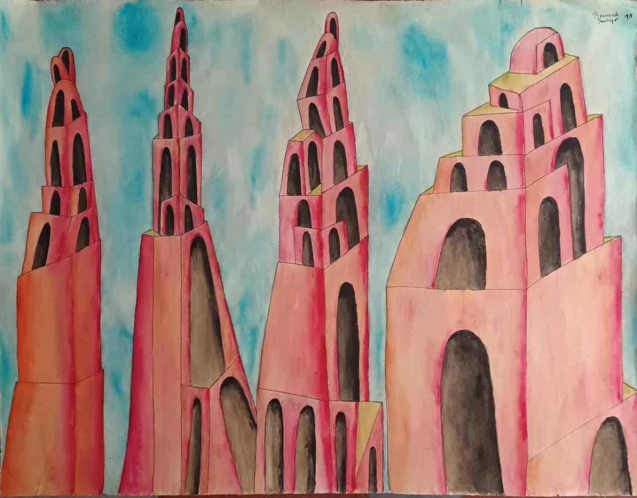 Title: The Red City. Technique: Watercolor and India ink on paper. Length: 62.50 cm. Width: 48.00 cm. Year: 1989.